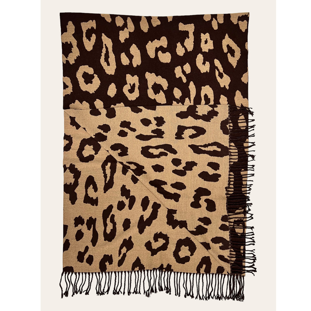 Unleash your wild side with this Leopard Print Cashmere Blend Scarf in rich brown tones. Crafted from a luxurious mix of 30% cashmere and 70% acrylic, it offers the perfect balance of softness, warmth, and style. The bold animal print adds a touch of fierce elegance to any outfit, making it a standout accessory for chilly days.