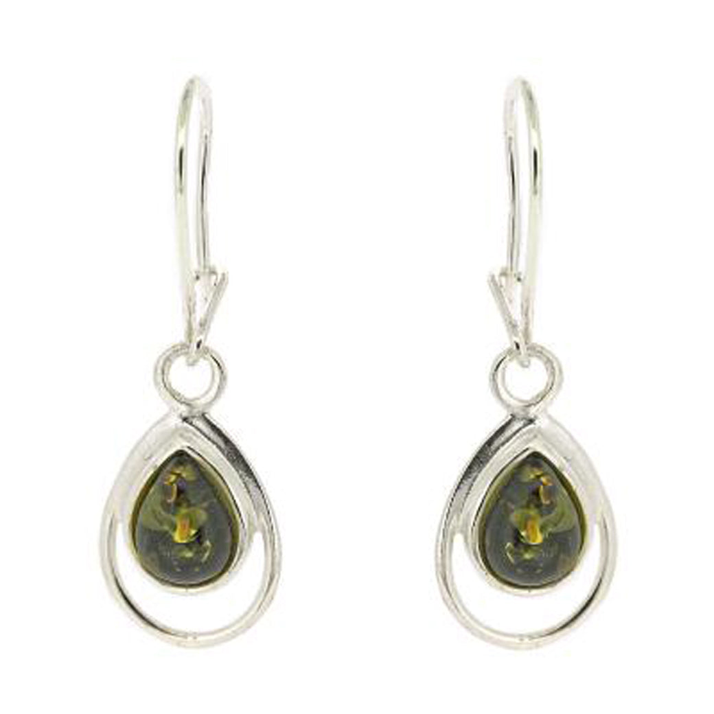 925 Silver Drop Earrings | Green Amber Double Teardrop