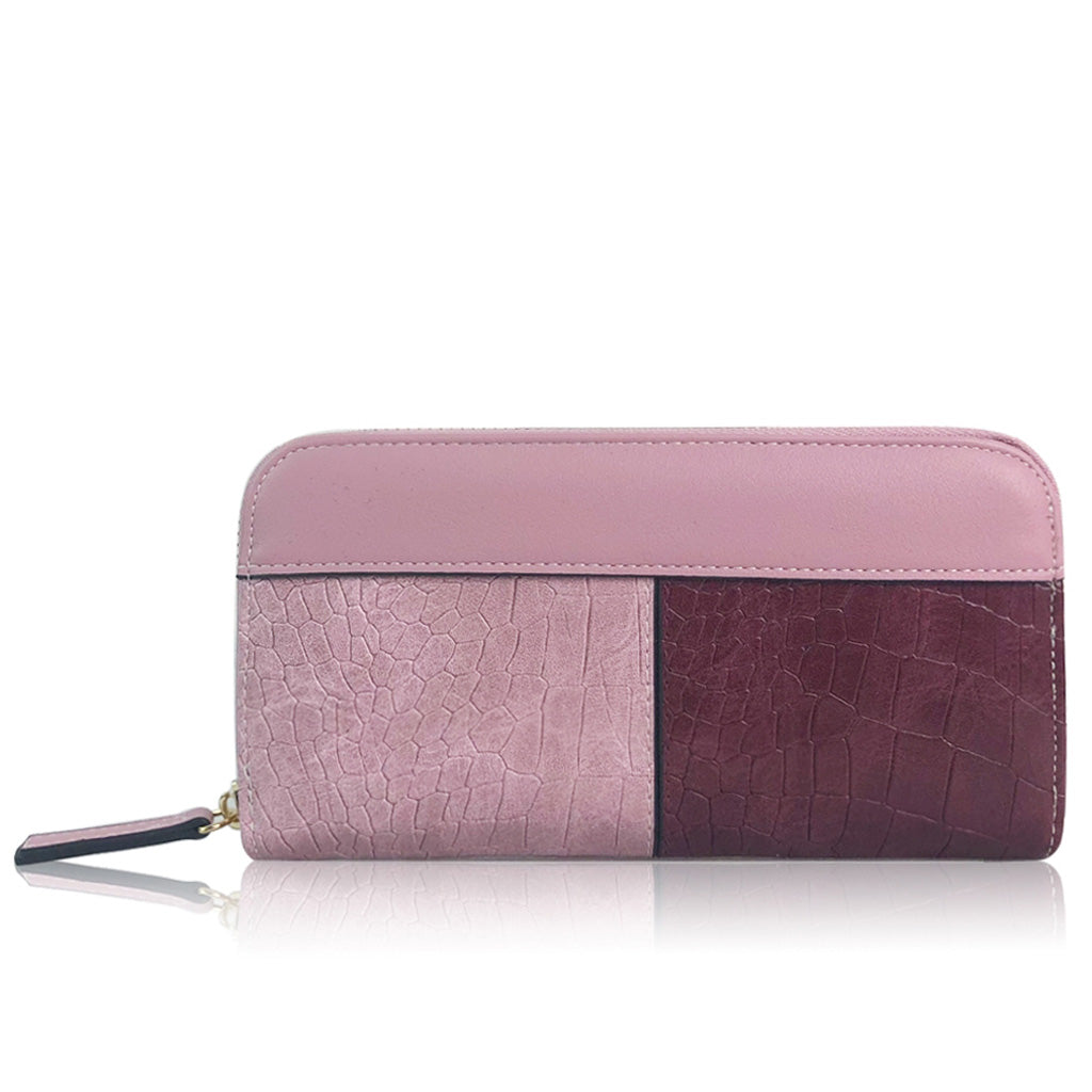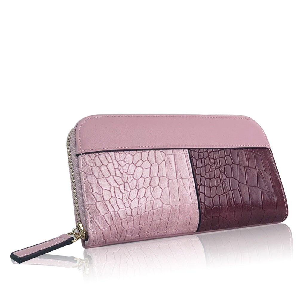 The faux snake print design of his purse effortlessly enhances any outfit. It offers ample space to carry all essentials. The purple shades are gorgeous and it measures about 10cm x 12cm; perfect for daily use!